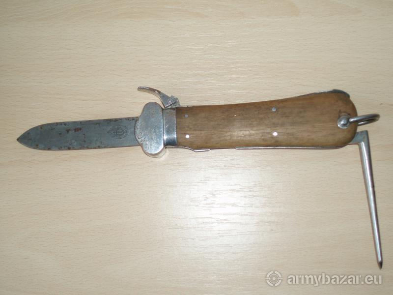 Vše funkční - nepoužitý. Německý gravitační nůž LW model. Nůž v nálezovém stavu bez pokusů o opravy. Na čepeli vylomený zoubek, chybí prasklá část pružiny bodce-viz foto. Zobrazit telefon: Břeclav 16.