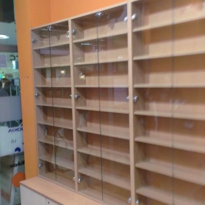 Vitrína (skříňka) skleněná. Vrchní část je prosklená. Zakoupená v kamenné prodejně. Starožitné knihovny, vitríny , bazar na starožitný nábytek, inzerce starožitností Set 3ks skříněk. Jemná výzdoba je tvořena řezbami na přední straně i na rozích vitríny a předních nožkách.