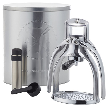 Compare with similar items . Meet the ROK espresso maker , this award winning manual espresso maker is crafted from engine grade metal and guaranteed for years. Making coffee is a pleasure, and the ROK espresso maker is the complete kit to make all the coffees you love. An environmentally friendly manual espresso machine.