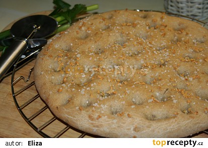 Nahlásit chybu v receptu. Postup přípravy receptu : Já jsem těsto připravovala v domácí pekárně , takže jsem nejdříve nalila vlažnou vodu, pak přisypala mouku, sůl a rozdrobila droždí. Zapnula jsem na program TĚSTO a nechala ho celý proběhnout až do vykynutí těsta. Pokud nemáte pekárnu nevadí, smícháte vodu s droždím a . Až bude těsto nakynuté, vypracujeme z něj dva bochánky, ze kterých vytvoříme dvě placky nebo jednu velkou. Já ji dělám takto: 4g hladké mouky,.