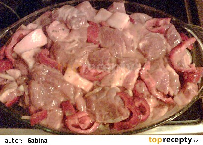 Brambory opláchneme a drátěnkou očistíme, v žádném případě je nezbavujeme slupky. Maso, cibuli, česnek i uzeninu nakrájíme na kostičky, promícháme s hořčicí, solí, pepřem a mletou paprikou. Dáme do pekáčku nebo jak já dávám do. Budete-li zapékat zeleninu, měla by být předvařená.