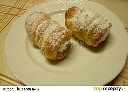 Pokud nevíte jak na to nabízíme Vám. Vybereme a po pár minutách se snažíme točivým pohybem trubičku uvolnit a přes tenčí konec trubičky stáhnout. Necháme zcela vychladnout a plníme pytlíkem naplněným bílkovým sněhem nebo šlehačkou. Jednoduché a rychlé kremrole z listového těsta plněné bílkovým sněhem.