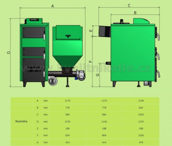 Vyhřívaná plocha je závislá na typu instalace kotle a potřeby vytápění. Má plně automatizovaný systém spalování paliv a vysokou účinnost spalování.