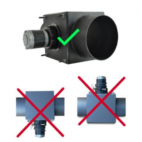 V případě, když komín nesplňuje minimální rozměry A a B doporučujeme instalovat odtahový ventilátor spalin. Instaluje se mezi výstupní komínové hrdlo kotle a komínové těleso. Průměr vstupu 1mm, výstup 60x1mm.