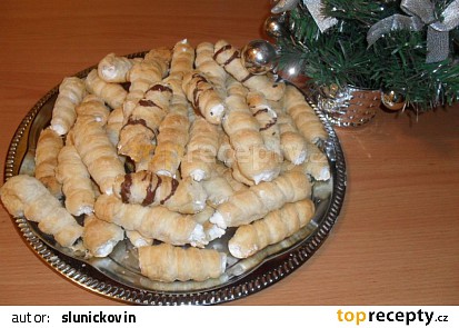 Pravé trubičky plněné bílkovým sněhem tak, jak je znáte z cukrárny. Mar Po částech těsto rozvalujeme a rádýlkem nařežeme na proužky cca 5cm široké, namotáme na plechové trubičky ( používám ty velké), potřeme rozšlehaným vejcem a pečeme cca při 180°C dozlatova. Horké sejmeme a necháme úplně vychladnout.